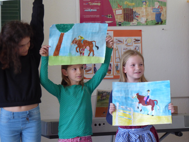 Am Donnerstag fand klassenübergreifend die Aktion „Kinder lesen Kindern vor“ statt, die ebenfalls großen Anklang fand, wie auch der Bücherflohmarkt am Freitag, bei dem die Schülerinnen und Schüler ihre gebrauchten Bücher verkaufen und selber welche kaufen konnten. Zum Abschluss der Frederickwoche traf sich die ganze Schulgemeinschaft nochmal in der Aula, wo jede Klasse zeigen durfte, womit sie sich beschäftigt hatte: In Klasse 1 ging es um das Buch „Frederick“ und in Klasse 2 um Indianergeschichten, die Drittklässler lasen gemeinsam das Buch „Franziska und die Kuh“ und die Viertklässler „Der Räuber Hotzenplotz“.