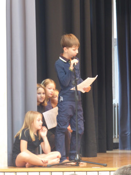 Da Bürgermeister Roland Haug bei der Einschulung verhindert war, schrieb er einen persönlichen Gruß an die Erstklässler und Frau Binder las die Nachricht vor.