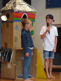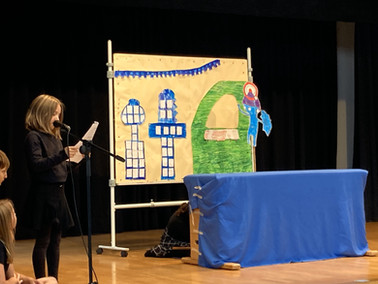 Die Drittklässler führten mit ihrer ehemaligen Klassenlehrerin Frau Kumpf das Theaterstück „Das Monster vom blauen Planeten“, nach einer Geschichte von Cornelia Funke, auf.